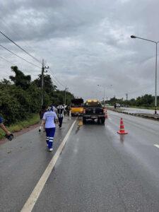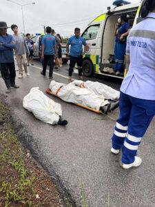 ในที่เกิดเหตุพบรถยนต์เก๋งสีขาว สภาพชนเสาไฟฟ้าจมอยู่ในน้ำข้างทางสภาพรถพังยับนอนตะแคง ภายในรถพบผู้เสียชีวิตจำนวน 3 ราย กู้ภัยได้นำร่างผู้เสียชีวิตออกมาจากซากได้สำเร็จ ส่วนรายละเอียดเพิ่มเติมอยู่ระหว่างการตรวจ