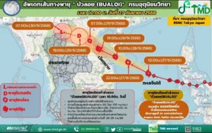 ประกาศกรมอุตุนิยมวิทยา ฉบับที่ 6 (267/2568) เรื่อง พายุ “บัวลอย” และฝนตกหนัก