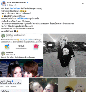 เป็นข่าวเศร้าของวงการเพลงลูกทุ่งไม่น้อยเมื่อวันที่ 25 กันยายน 2568 เวลา 20.23 น. อาสาสมัครมูลนิธิประชาร่วมใจ อ.นบพิตำ รับแจ้งเหตุหญิง วัย 39 ปี ผูกคอดับใต้ต้นมังคุดภายในสวน น(บ้านยอดเหลือง) หมู่ 6 ต.นาเหรง อ.นบพิตำ