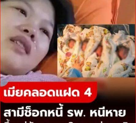 อย่างไรก็ตาม ระหว่างที่แม่ยังพักฟื้นและลูกๆ ต้องนอนในห้องดูแลพิเศษ เธอพยายามโทรหาสามีและแม่สามี แต่ไม่มีใครตอบ จนกระทั่งได้รับข้อความจากสามีว่าเขา “ไม่มีปัญญาจ่ายค่ารักษา” ซึ่งแพทย์ประเมินไว้สูงถึง 400,000 หยวน (ราว 2 ล้านบาท) เขาจึงหนีหายไปและตัดขาดการติดต่อ สุดท้ายสื่อท้องถิ่นและผู้ใจบุญช่วยกันตามหาตัวพ่อเด็กจนพบว่า เขานอนเล่นเกมอยู่บ้านไม่ไยดีใดๆ กับภรรยาและลูกที่ยังอยู่โรงพยาบาล