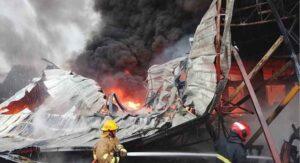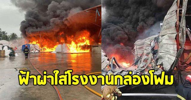 ฟ้าผ่าเปรี้ยง ใส่โรงงานกล่องโฟม ไฟลุกไหม้วอด อาคารถล่มซ้ำ