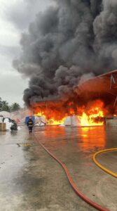 แต่ยังคงต้องฉีดน้ำเพื่อป้องกันการปะทุของเพลิงดังกล่าว ในขณะเดียวกัน โรงงานบริเวณโดยรอบจุดเกิดเหตุ ได้สั่งการให้อพยพคนงานออกจากพื้นที่โดยทันที