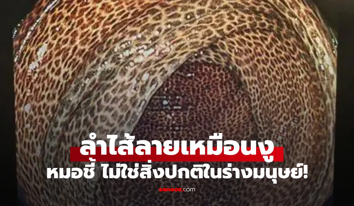 แต่ไม่นานมานี้ อาการท้องผูกกลับมาอีกครั้ง แถมเริ่มมีอาการแน่นท้องและปวดท้องร่วมด้วย ทำให้คุณหวังตัดสินใจไปพบแพทย์ที่โรงพยาบาลหมายเลข 1 เมืองหางโจว หลังจากทำการส่องกล้องตรวจระบบทางเดินอาหาร แพทย์ต้องตกใจเมื่อพบว่าผนังลำไส้ของผู้ป่วยมีลวดลายสีเข้มแต้มกระจายทั่ว คล้ายลาย “หนังงู” ซึ่งไม่ใช่สิ่งปกติในร่างกายมนุษย์