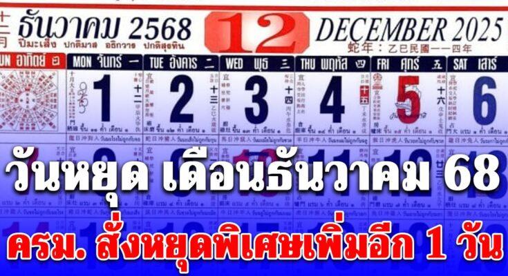 วันหยุดเดือนธันวาคม 2568