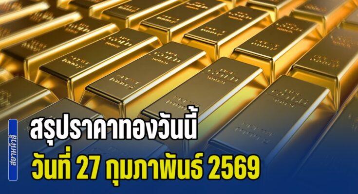 สรุปราคาทองวันนี้ 27 กุมภาพันธ์ 2569 หลังเช้านี้ สมาคมค้าทองคำ ประกาศราคาทองครั้งที่ 1 (เปิดตลาด) เมื่อเวลา 09.03 น. ปรับเพิ่มขึ้งถึง 200 บาท สู่บริเวณ 76,350 บาท