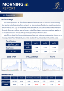 เเนะนำการลงทุนด้านทองคำ รอบเช้าวันนี้ 2 มีนาคม 2569 โดย บริษัท จีแคป จำกัด ราคาทองคำพุ่งแรงกว่า 2% ขึ้นเข้าใกล้ระดับ $5,400 ในช่วงต้นสัปดาห์ ท่ามกลางความตึงเครียดทางภูมิรัฐศาสตร์ที่ยกระดับขึ้นอย่างมีนัยสำคัญ หลังสหรัฐ และ อิสราเอล เปิดฉากโจมตีอิหร่าน ส่งผลให้ตลาดเปิดด้วยช่องว่างขาขึ้น (bullish gab) และเกิดแรงสินทรัพย์ปลอดภัยทันที ประเด็นนี้ถือเป็นปัจจัยหลักที่ขับเคลื่อบราคาในระยะสั้น เนื่องจากความเสี่ยงการขยายตัวของความขัดแย้งในตะวันออกกลางอาจกระทบเสถียรภาพพลังงานและเศรษฐกิจโลกโดยตรง จึงกระตุ้นให้เงินทุนไหลเข้าสู่ทองคำในฐานะที่พักความเสี่ยง