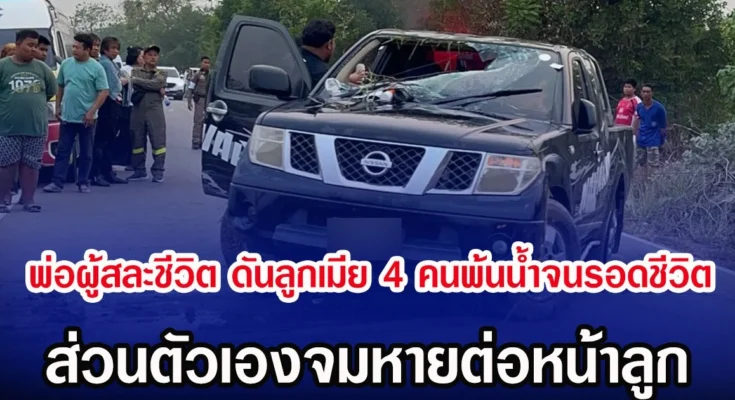 พ่อผู้สละชีวิต ดันลูกเมีย 4 คนพ้นน้ำจนรอดชีวิต ส่วนตัวเองจมหายต่อหน้าลูก